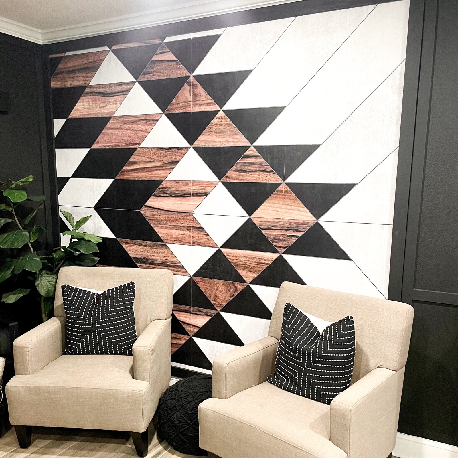 peel and stick wall mural, wood trim